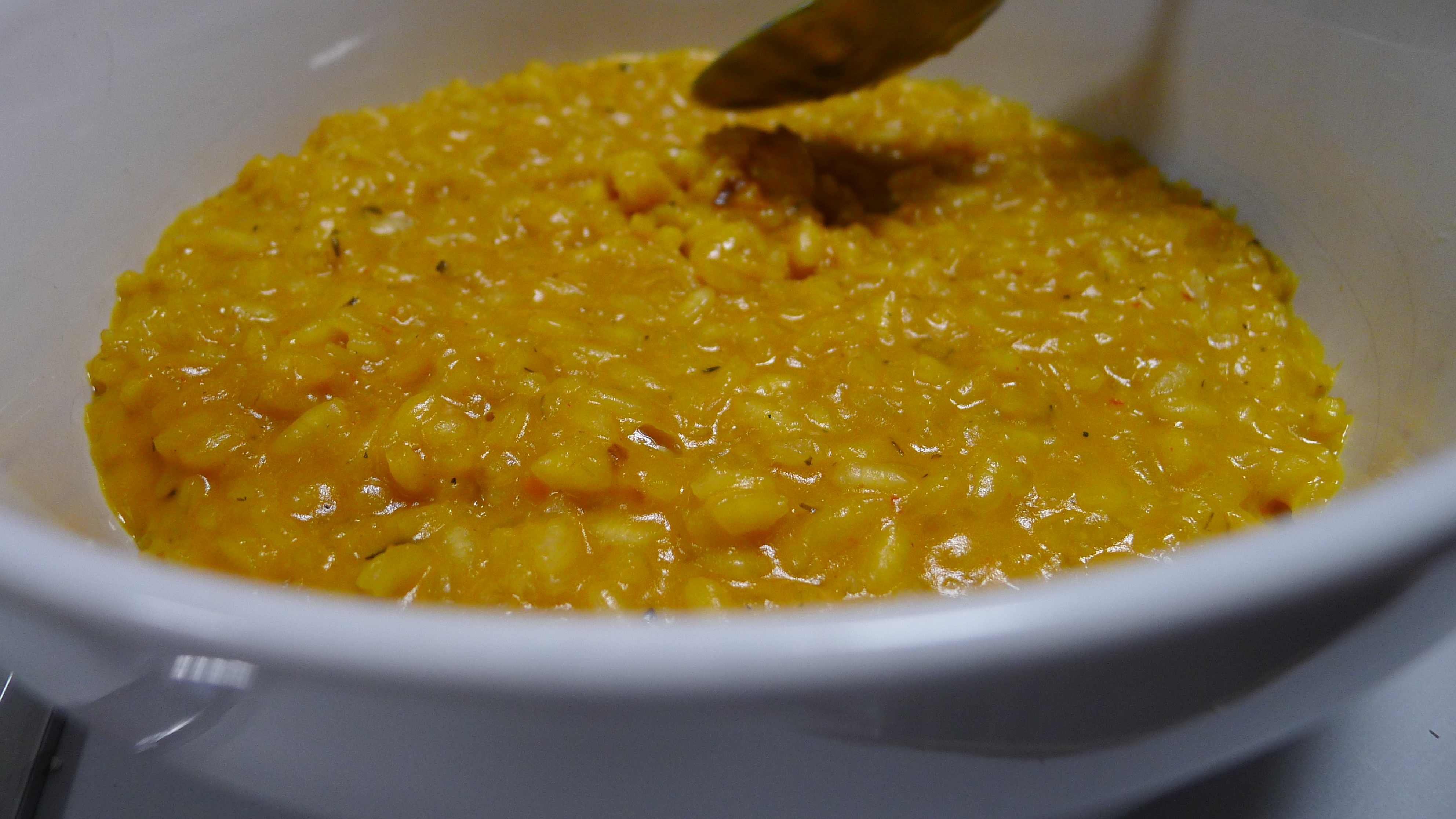 - Pil løg og hvidløg, og hak begge dele meget fint. Svits det i 1 spsk. olivenolie i en tykbundet gryde. Tilsæt de rå risottoris, og lad dem svitse med i 5-10 sekunder.