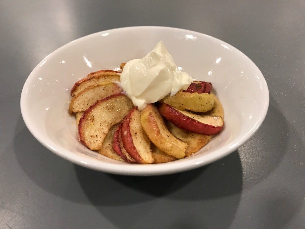 Æblerne skæres i tynde skiver og lægges fladt rundt i mørdejen, drysses med rørsukker og vanilje sukker og bages ved 200C i 8-10min.